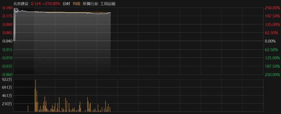 停牌近1个月的北京建设今日复牌,开盘直接跳涨220%,创近4年来新高,成交量较停牌前最后一个交易日急剧增加100多倍。