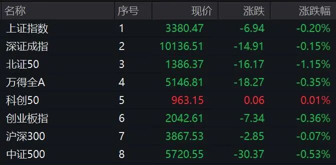 今日早盘,A股继续小幅调整,北证50跌逾1%,再度失守1400点,上证指数、深证成指等也全线飘绿,科技股相对活跃,科创50微幅飘红。超4200只个股下跌,成交保持平稳。